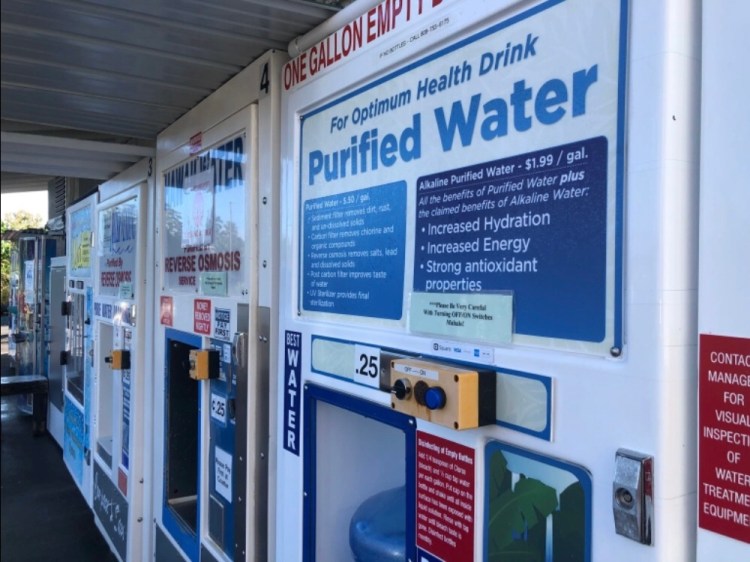 You can also try to find a place that has these reverse osmosis water machines or purified water machines. These machines allow you to fill 1 gallon, 3 gallon, or 5 gallon water bottles. Pick whichever one is easiest for you to carry and keep cold. It’s important to keep the water cold because it can grow salmonella if left in the sun. If it’s sitting for awhile then you’ll have to boil it before using, or perhaps only use it for cooking.